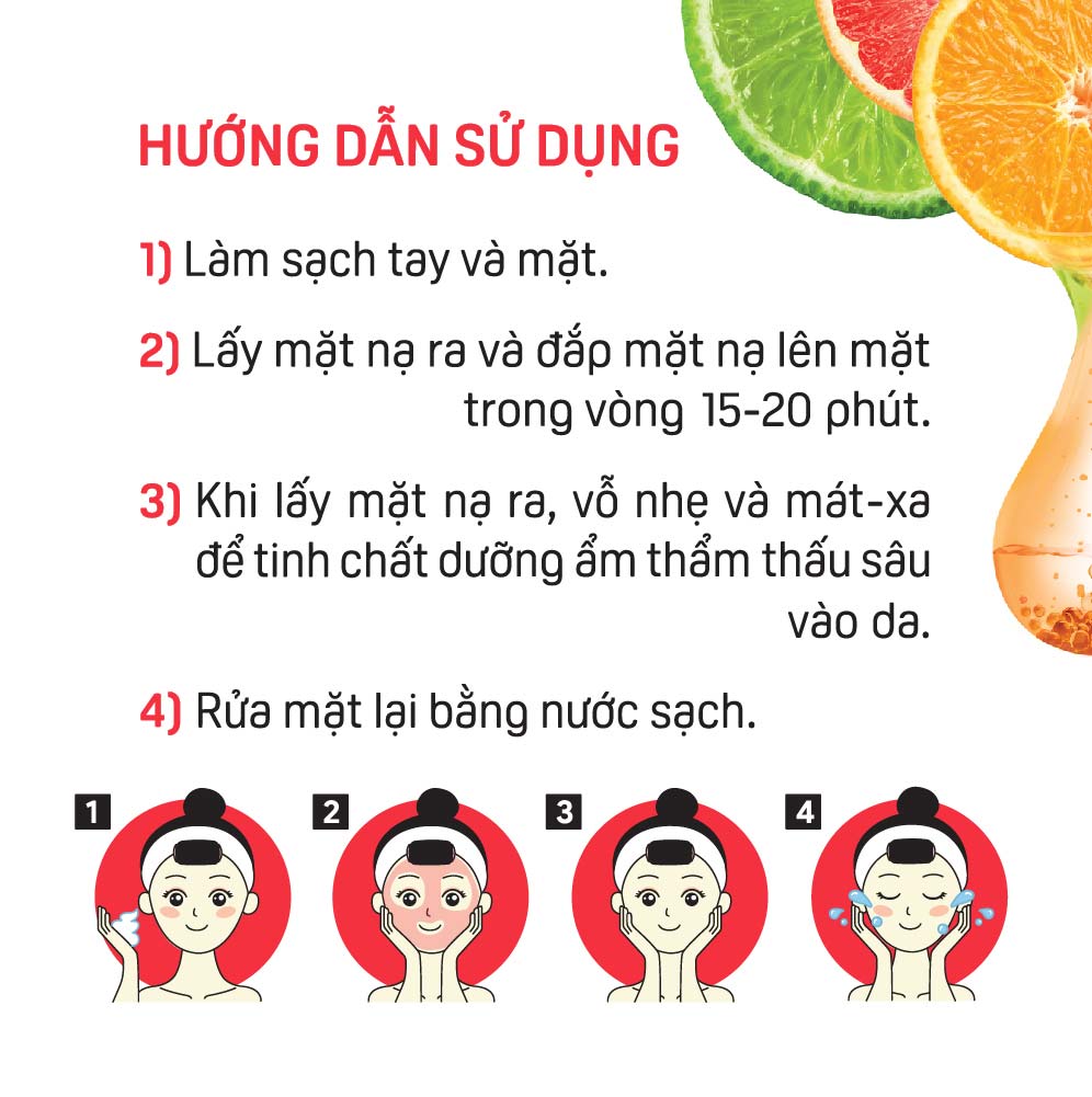 - Sau khi lấy mặt nạ ra, dùng đầu ngón tay vỗ nhẹ để dưỡng chất thẩm thấu vào da.