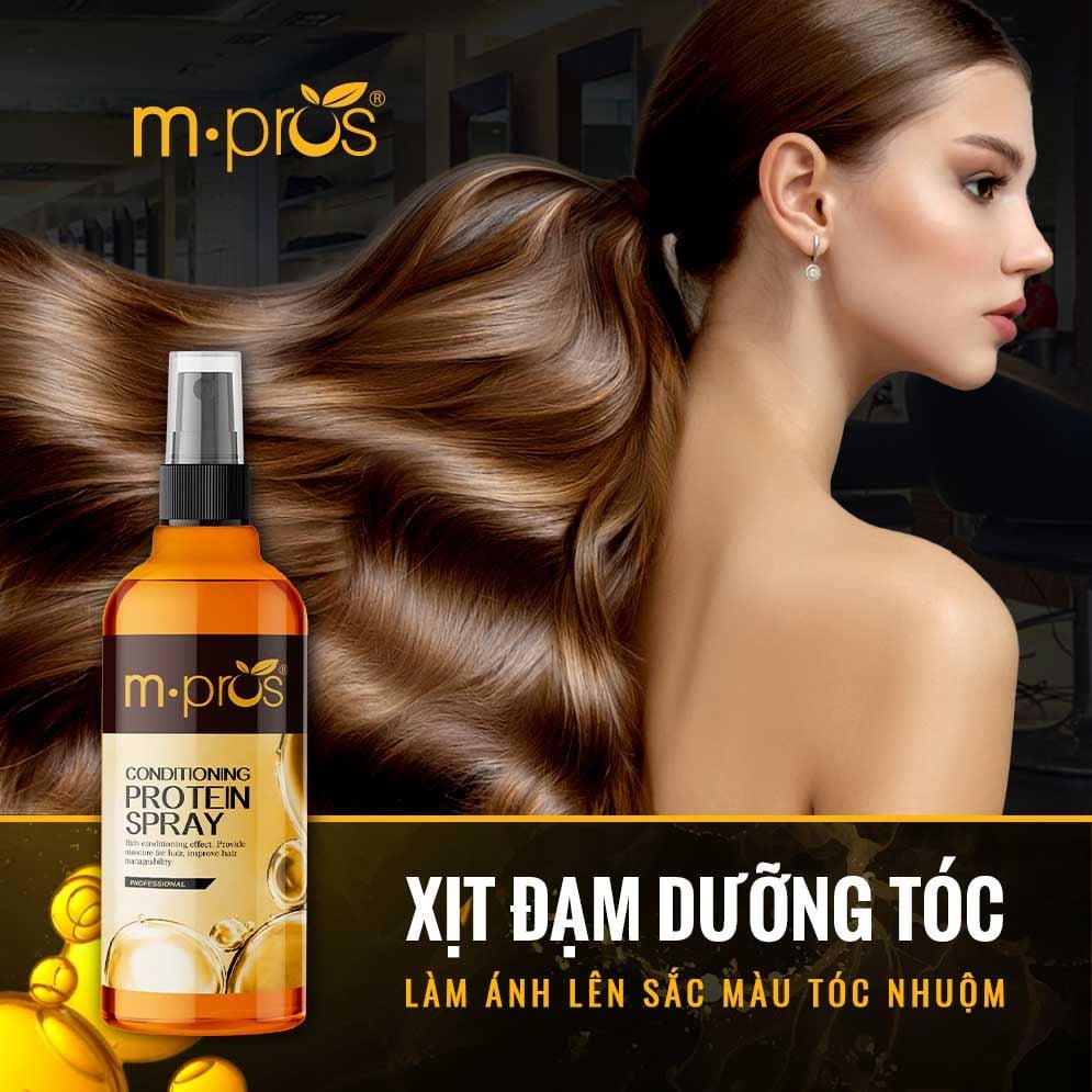 - Xịt dưỡng M.pros chứa nhiều Protein, Keratin giúp tái tạo lại chất sừng giúp phục hồi tóc hư tổn và óng mượt.